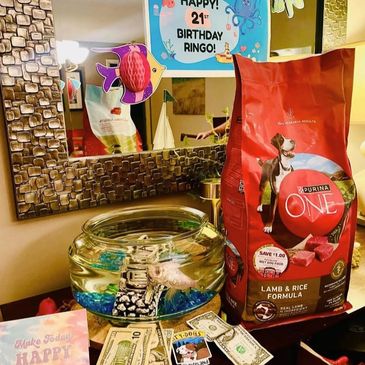 Yes, you read that right! Ringo’s family and friends threw him a birthday party, and since goldfish don’t need much, Ringo requested that guests make a donation to suppo