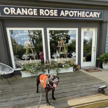 Adoptable City Dogs Cleveland Amelia stopped by Orange Rose Apothecary to say thank you for their generous support!