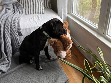 Currently, the KONG team is the primary source of in-kennel enrichment. The KONG team cleans, stuffs, freezes, and distributes tasty KONGS multiple times a week for the dogs to enjoy. Common KONG fillers are peanut butter, spray cheese and mini treats. Dogs also get to enjoy durable chew toys in their kennels.